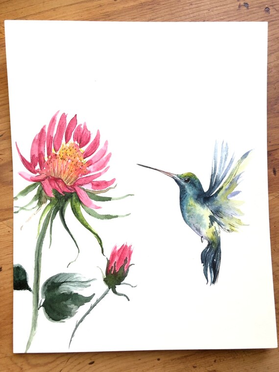 Feeding Hummingbird With Flower Print Etsy
